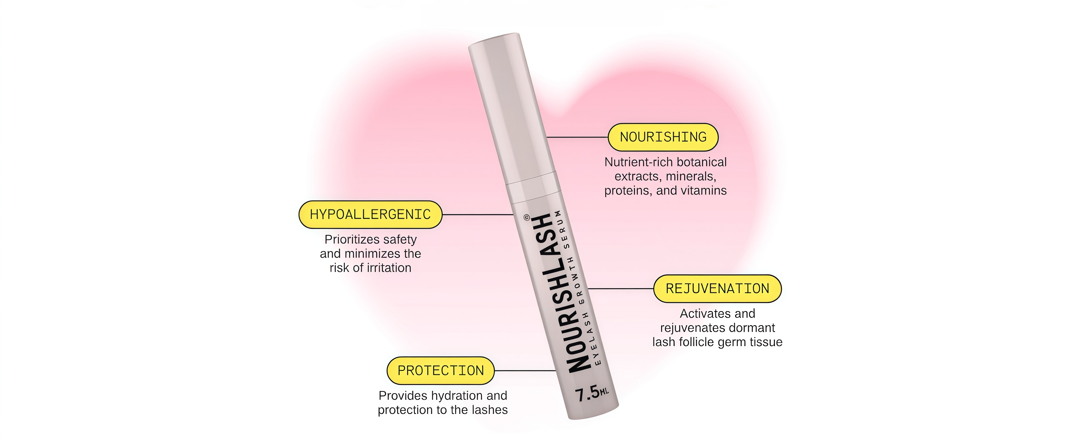NourishLash is the result of years of research into the most advanced technology to grow longer eyelashes. With endless eyelash growth products on the market claiming to grow eyelashes—and knowing that beautiful lashes can build your confidence and boost your natural beauty—the makers of NourishLash wanted to create a new, never-before-seen eyelash serum for women suffering from thinning lashes due to chemotherapy, hormonal changes, dietary deficiencies and more.
